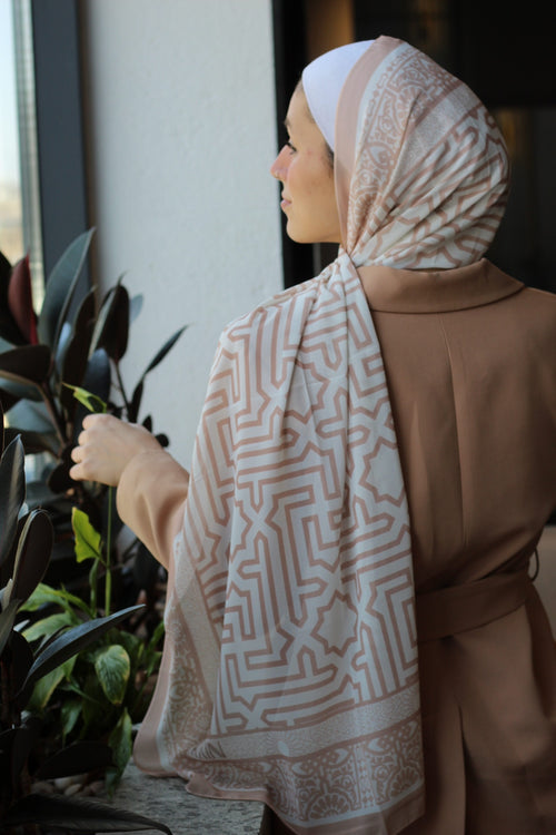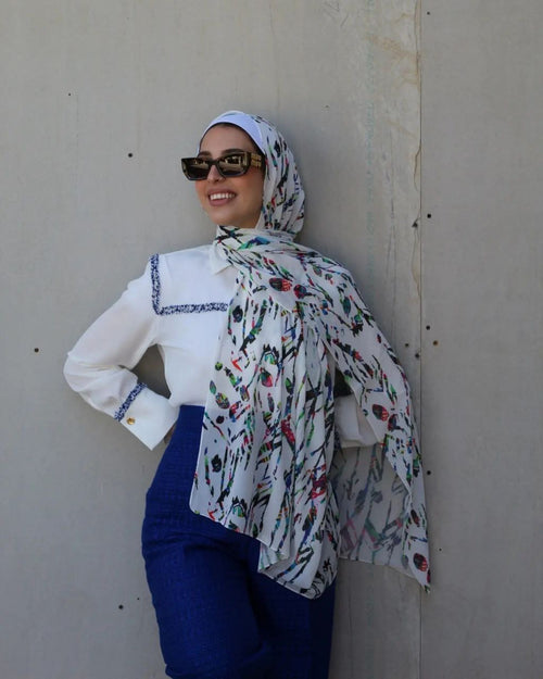 A thoughtfully curated collection of scarves featuring clean lines, subtle frames, and simple designs that never try too hard.